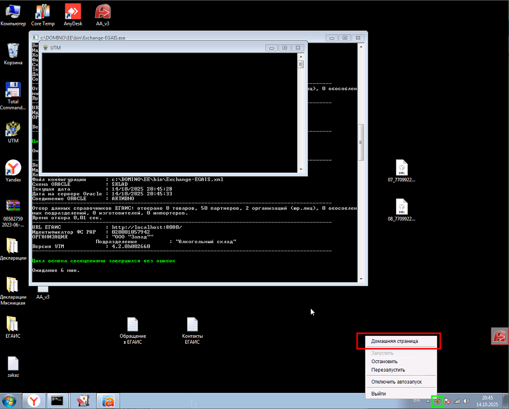 После перезагрузки дожидаемся пока статус работы УТМ будет "Работает", нажимаем по значку УТМ в трее и открываем домашнюю страницу УТМ.