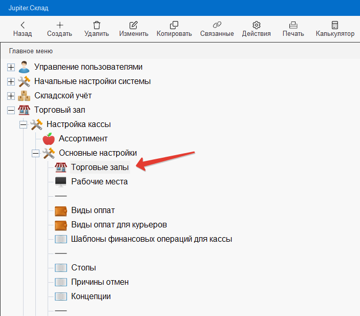 Настройки могут выполняться самим пользователем программы, если раздел Торговый зал, Настройка кассы, Основные настройки, Торговые залы доступны пользователю, системным администратором, либо сотрудниками поддержки программы Юпитер.