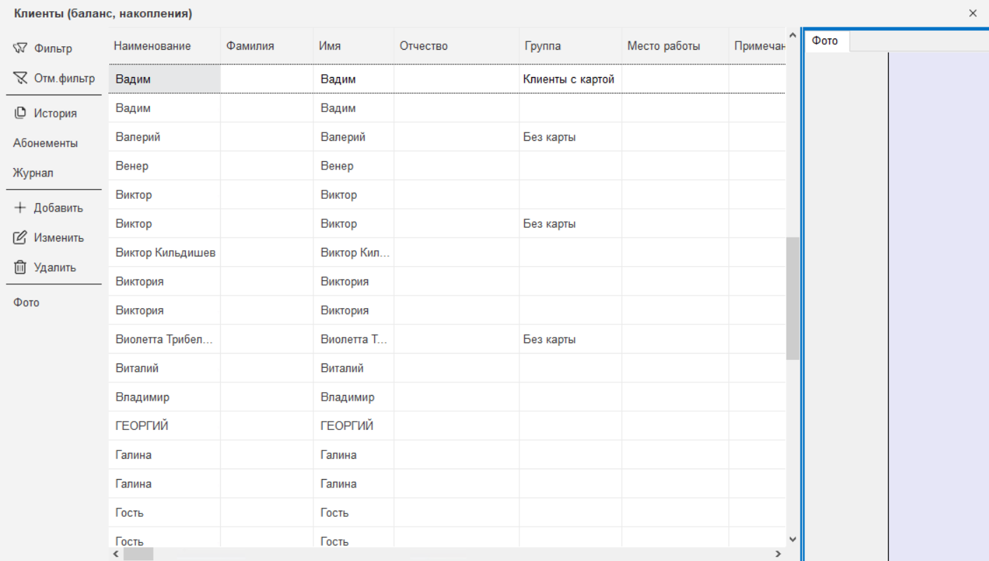 | Фото | Вызов контекстного меню для работы с фотографией клиента (рис. 3) |