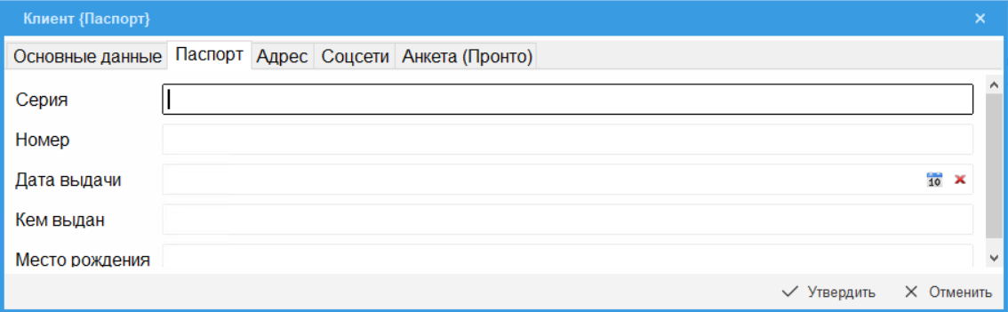 Рисунок 6. Форма "Клиент", вкладка "Паспорт"