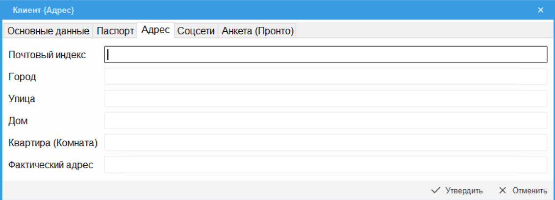 Рисунок 7. Форма "Клиент", вкладка "Адрес"