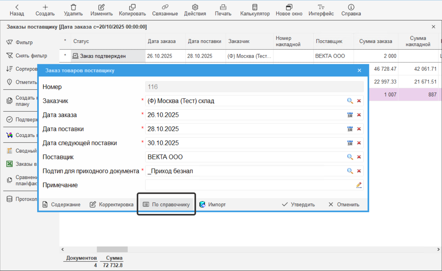 1. В форме заказа нажмите кнопку "По справочнику" (рис. 10);